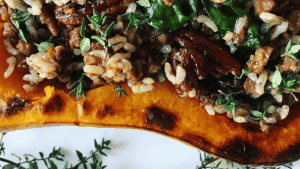 Stuffed acorn squash is a visually stunning dish that’s easy to make and packed with seasonal flavors. Fill the roasted squash with a mixture of wild rice, cranberries, pecans, and herbs for a satisfying holiday entrée.